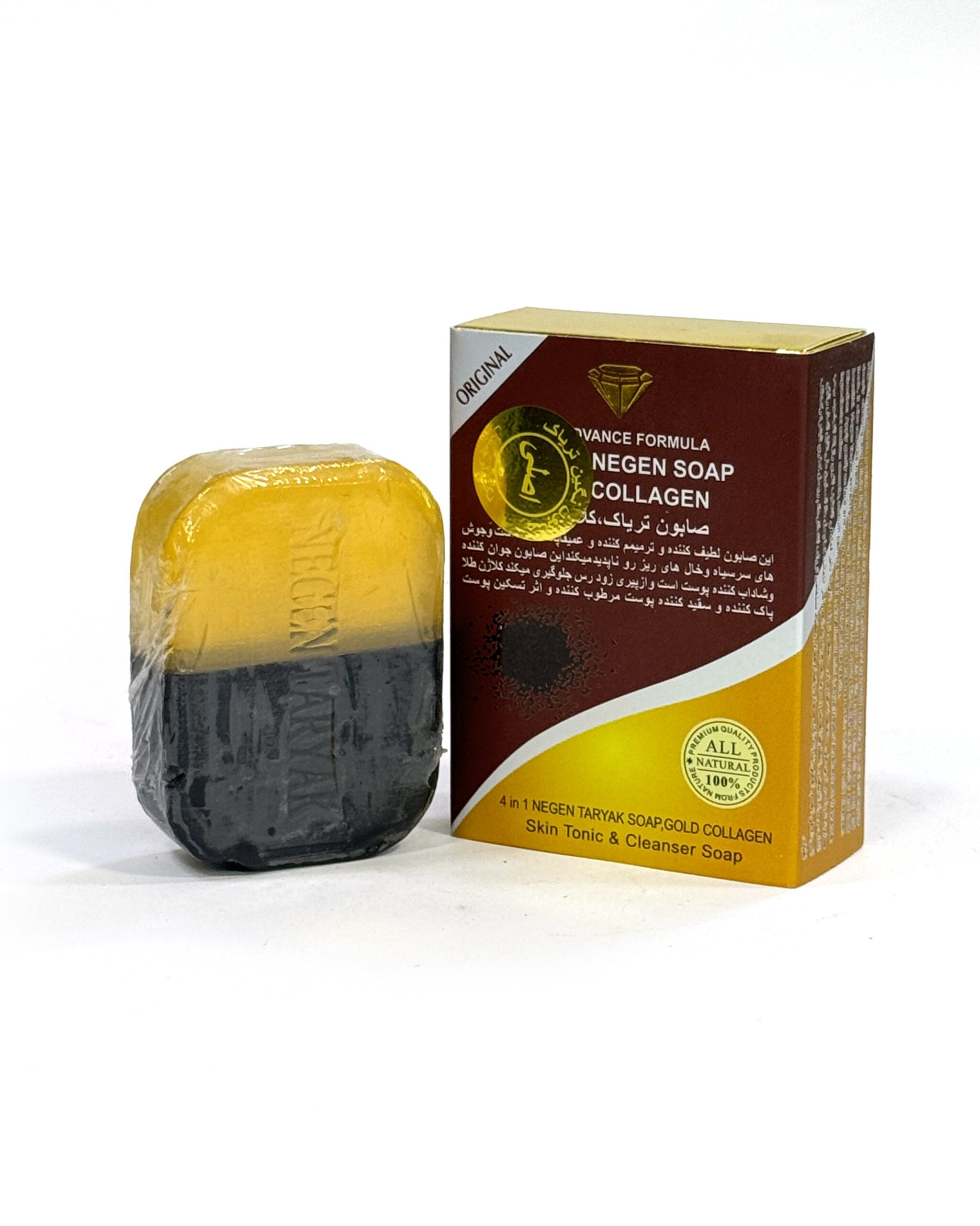 صابون تریاک کلاژن طلا یک پاک کننده پوست بسیار قوی برای صورت و بدن است که حاوی کلاژن و طلا می باشد. این صابون لطیف کننده پوست، ترمیم کننده جای جوش، از بین برنده جای جوش، رفع جوش های سر سیاه،سفید کننده خیلی عالی است. استفاده از این صابون باعث تقویت و روشنکردن پوست میشود و احساس طراوت و شادابی برای پوست ایجاد میکند.